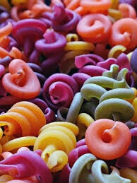 Selbst eingefärbte Penne,ungekocht in Bio-Qualität.