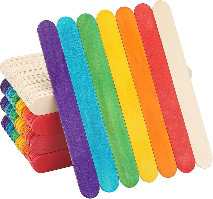 Bunte Holzstäbchen ,die sowohl für Sensorik - Spiele als auch für Bastelaktivitäten verwendet werden können.